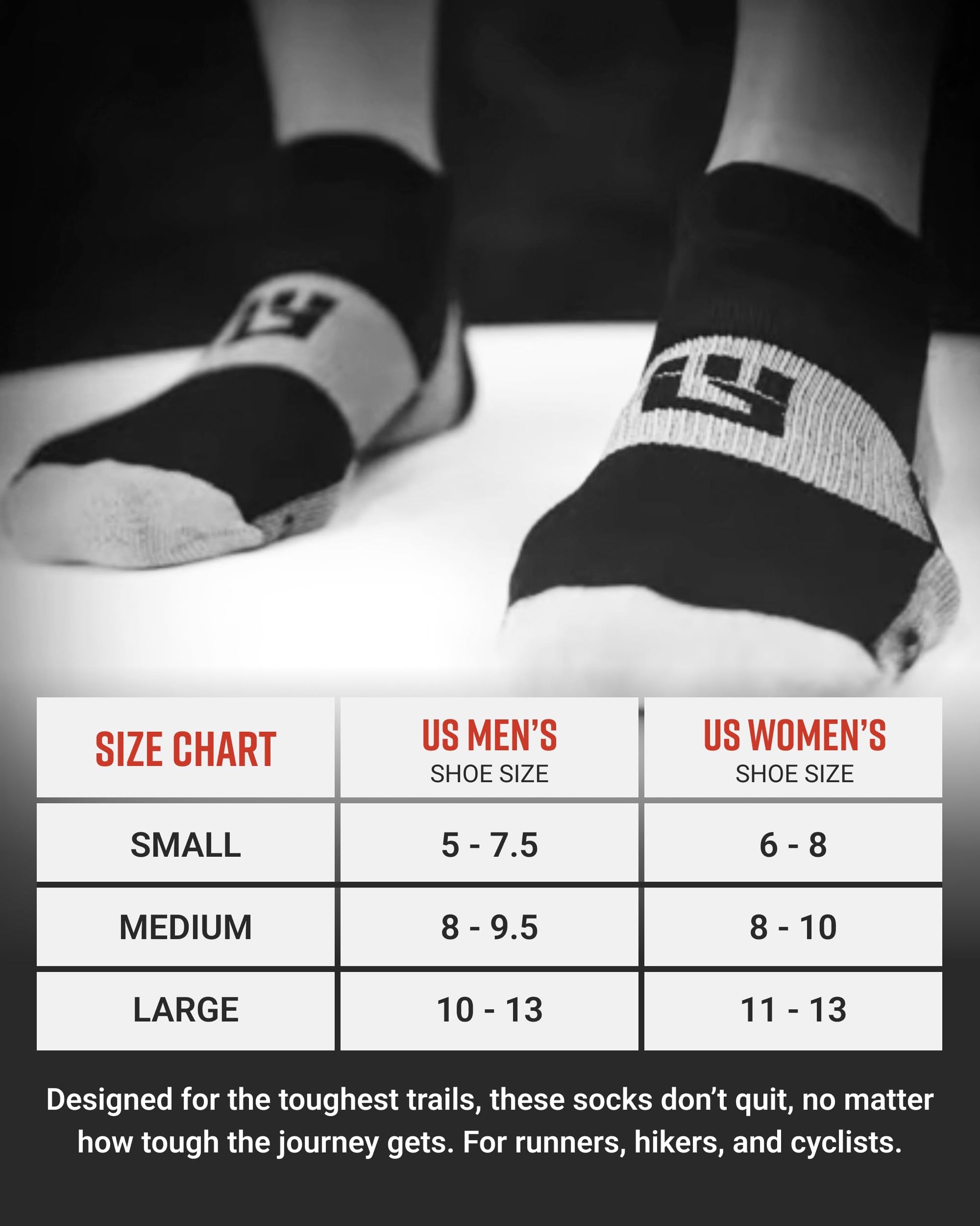 From heel to toe, the MudGear No-Show Running Socks are built with the same advanced design as our acclaimed 1/4 crew trail socks. The only difference occurs at the top, where our no-show version provides Achilles protection then dips below the ankle for a stylish line just above your shoe top.
