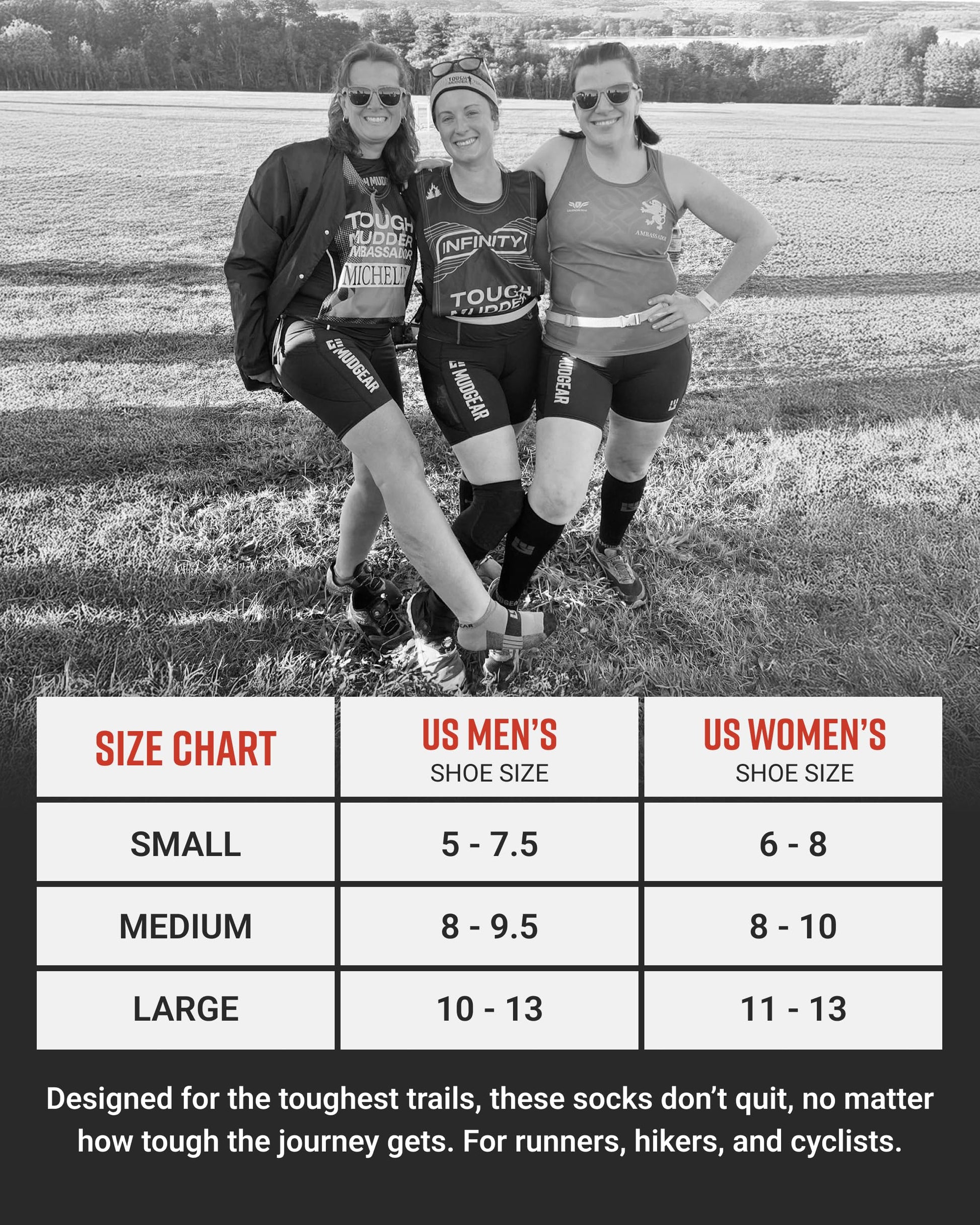 "Decided to try out these new socks because I have been pleased with other MudGear products I have owned. I run quite a few road and trail miles with training and racing and was looking for a little bit softer sock for my road running efforts. These socks fit great and provide the right level of support for my feet. I have been testing them out on the road although I will probably add them into my trail rotation (once I get a couple more pairs) as well to see how they do in wet conditions. I am glad to support a quality product that is made in the USA."